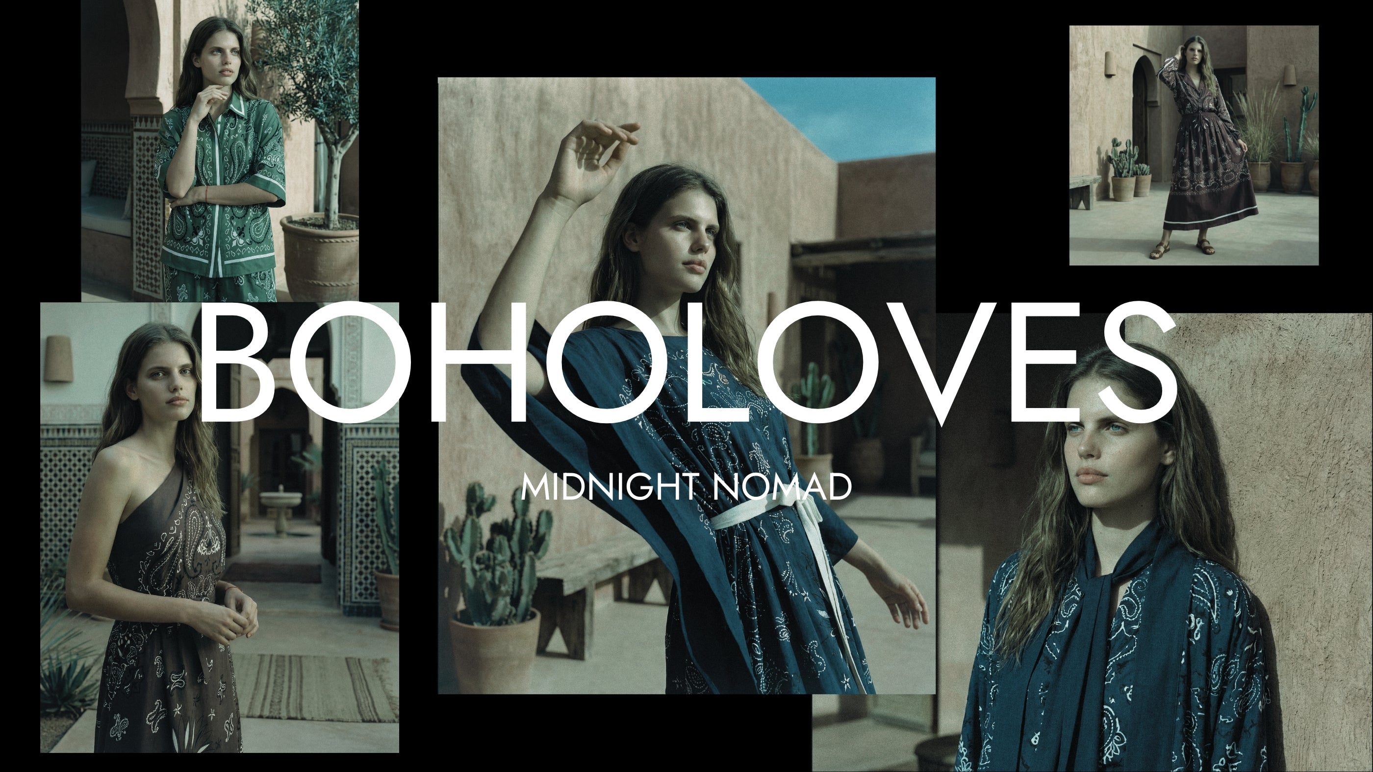 Deep hues meet the warmth of sunlit tones. A modern interpretation of the timeless bandana print. The Midnight Nomad collection tellsthe story of a strong, understatedsilhouette. Fluid forms, clean lines,and balanced proportions create alook that is effortless yet refined. Each piece stands confidently on itsown, yet together they form aseamless whole. Designed to movefrom day to night, from city streets toseaside escapes. A quiet confidence. A timeless attitude